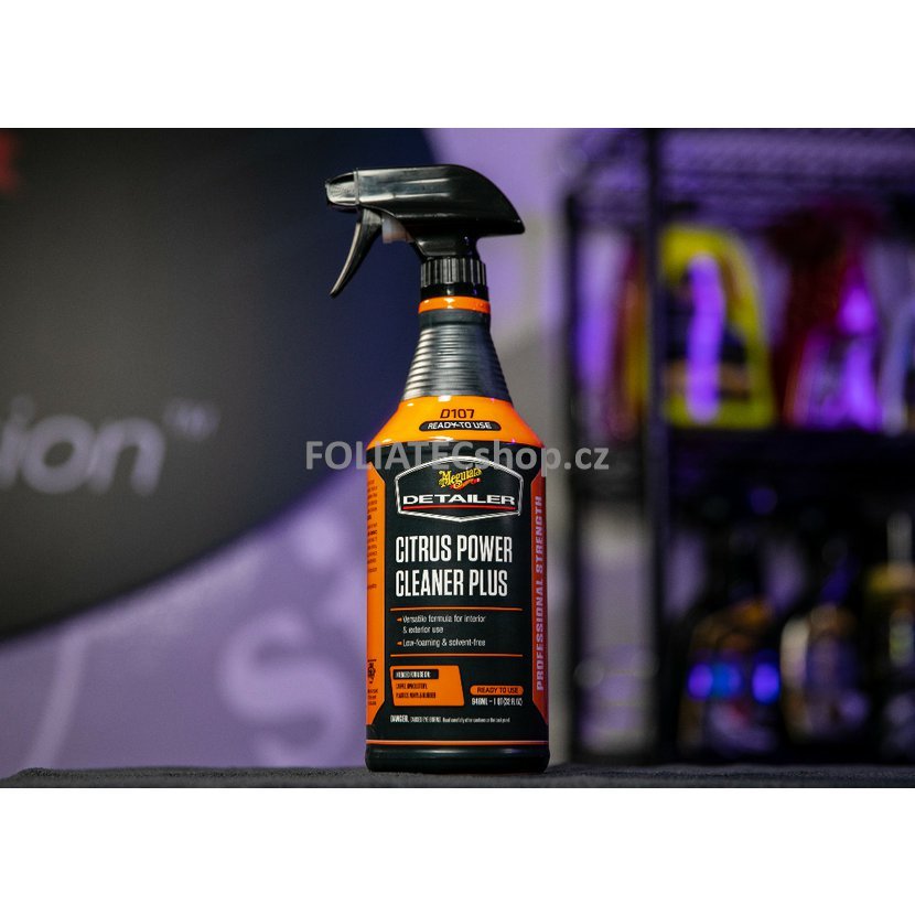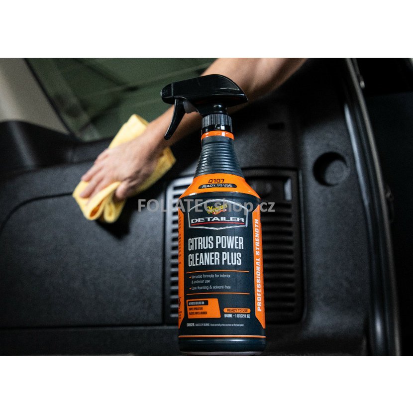 Meguiar's Citrus Power Cleaner Plus je ideálním produktem s nízkou pěnivostí určený pro profesionály i běžné uživatele a nadšence, kteří potřebují rychle a zcela odstranit mastnotu, špínu a skvrny z koberců, čalounění, plastů, motorového prostoru, pneumatik a dalších povrchů. Jeho složení bez obsahu rozpouštědel je ideální pro tepovače i extraktory pracující s horkou i studenou vodou, stejně jako pro vzduchové čisticí nástroje.